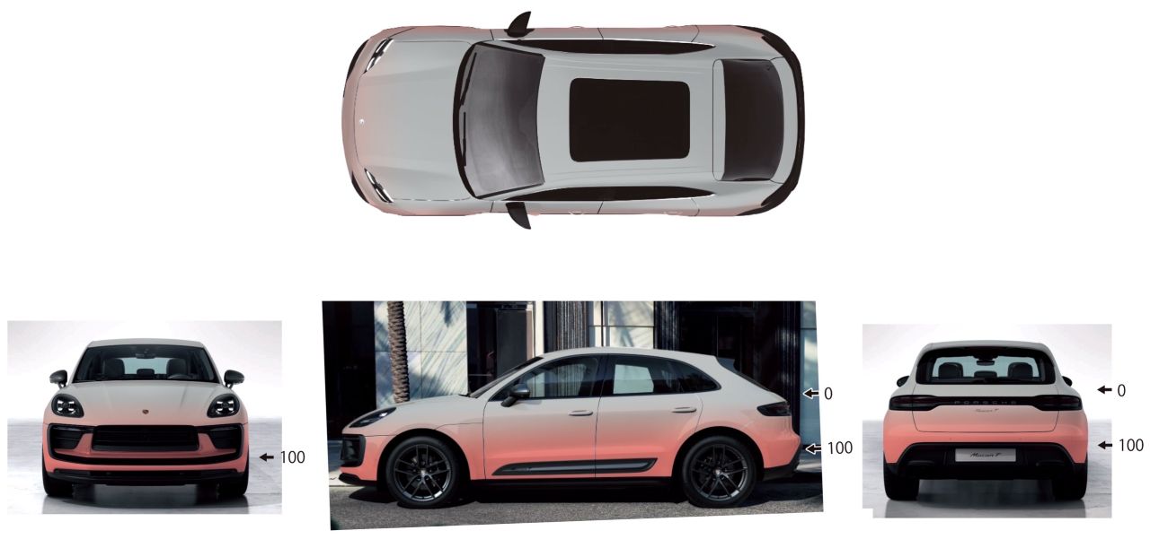 前後やセンター分けならまだ施工もしやすいですが、上下のグラデーションは一見「結構簡単じゃね?」な雰囲気ですが、見た目と反して絶妙な色の違いがパネルごとに出てなかなか合わずに、大変苦労しました・・・