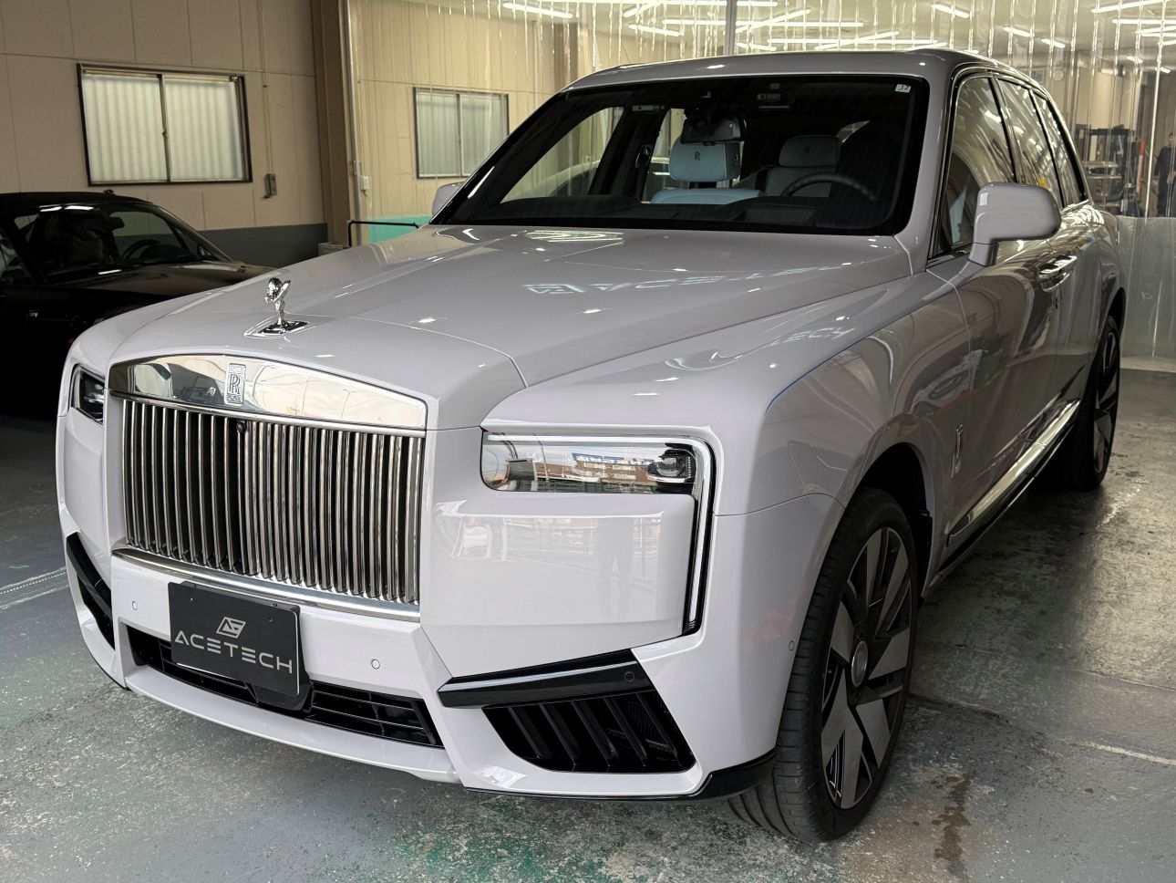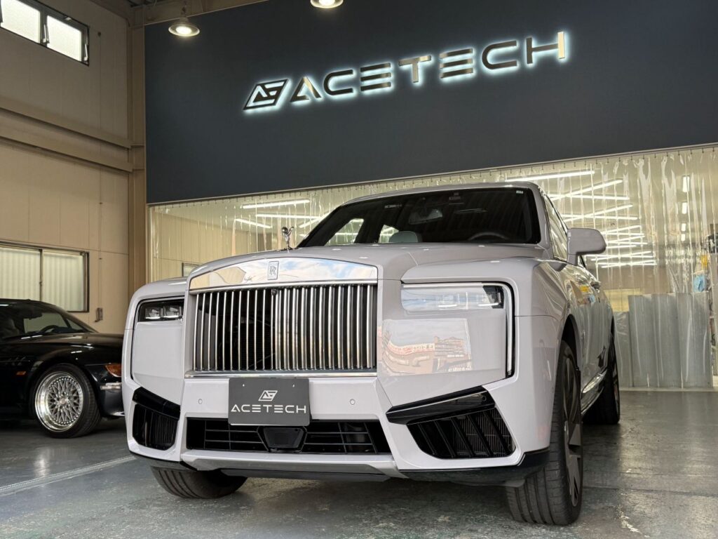 鏡面ステンレスのパンテオングリルとウィンドモールに、グロスペイントプロテクションフィルムを施工いたしました。