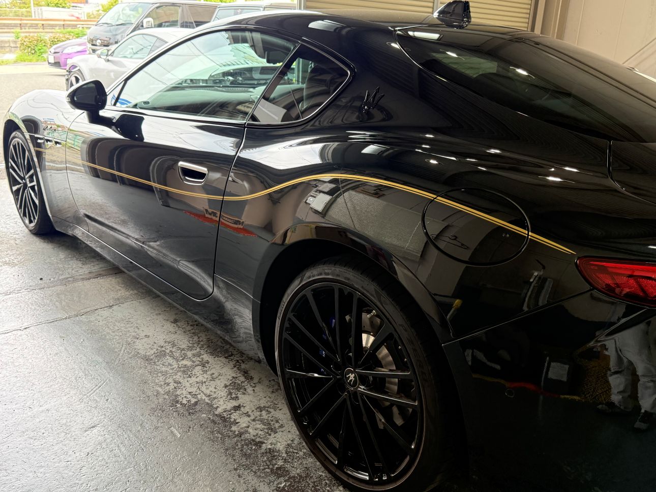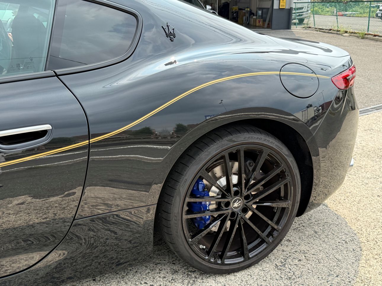 ゴールドの細いラインを、フロントからリアまで施工いたしました。