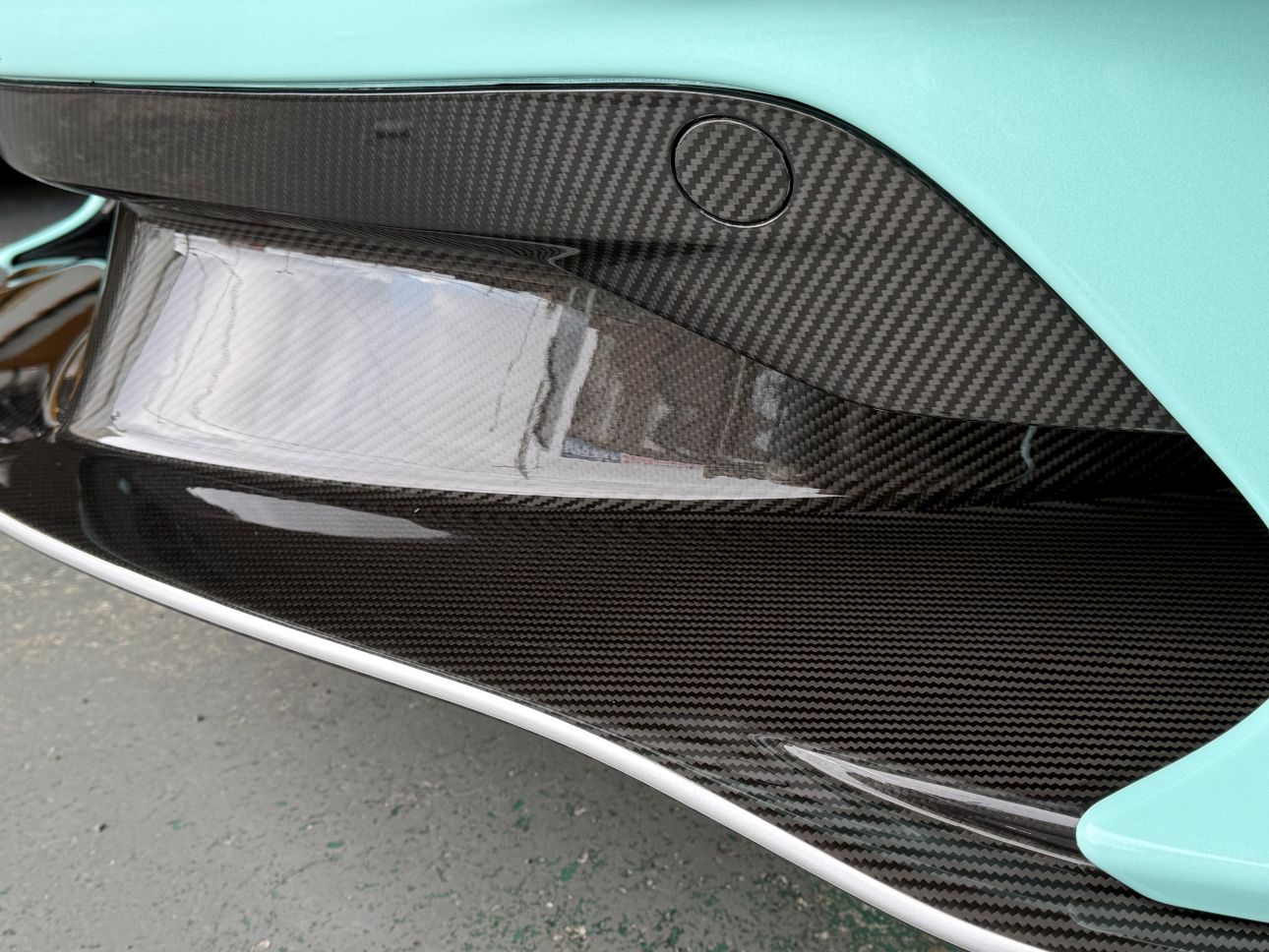フロントカーボンリップは、二枚重ね施工して飛び石から厳重保護。