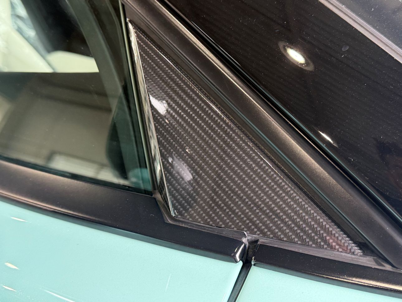 ピラー樹脂部分をカーボンプロテクションフィルムを施工し、高級感をアップいたしました。