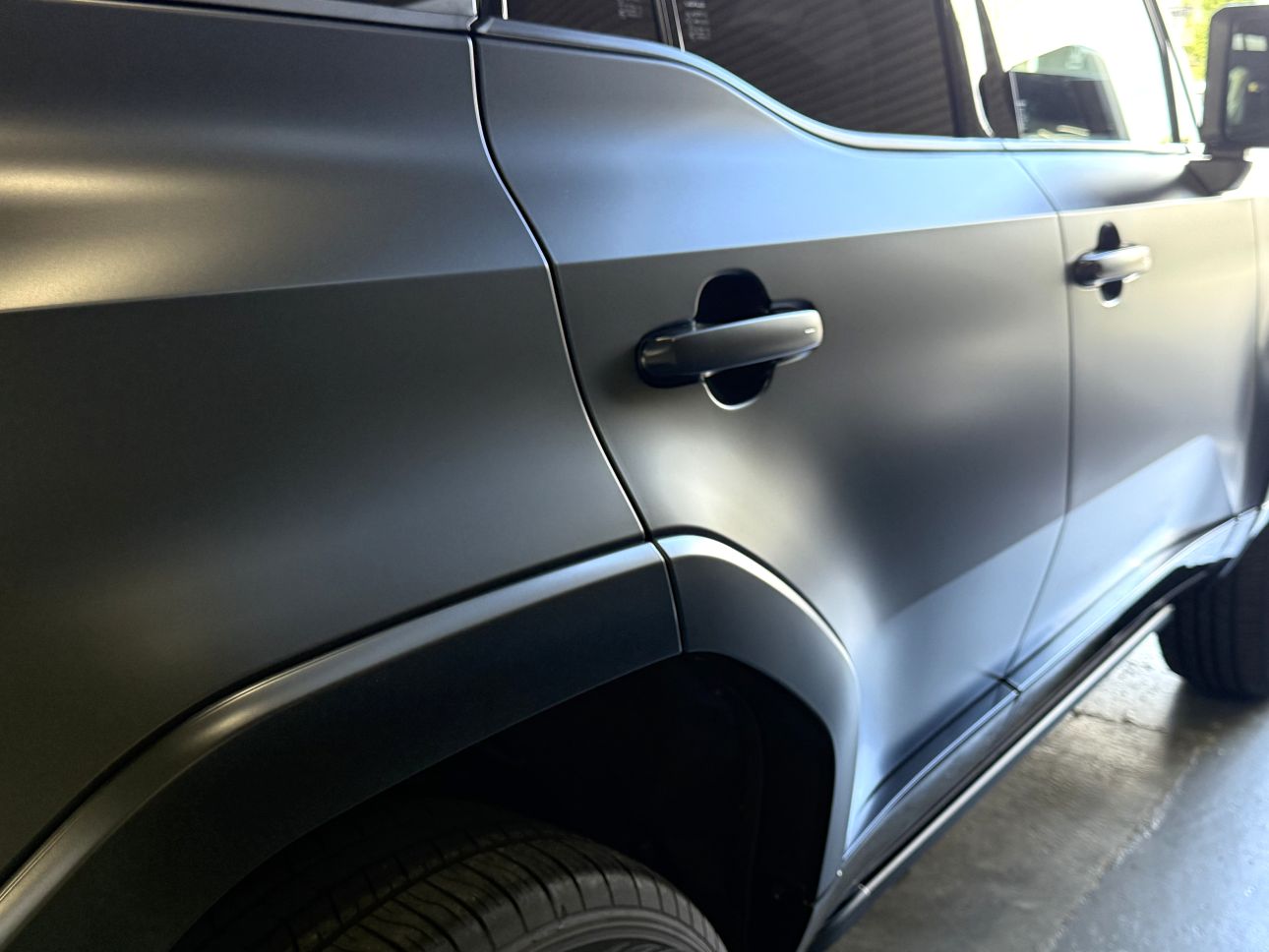 また、光の映り込みも完全なマットは吸収されるためにボディのプレスライン等が出にくく、全体にぼやけて見えがちになります。