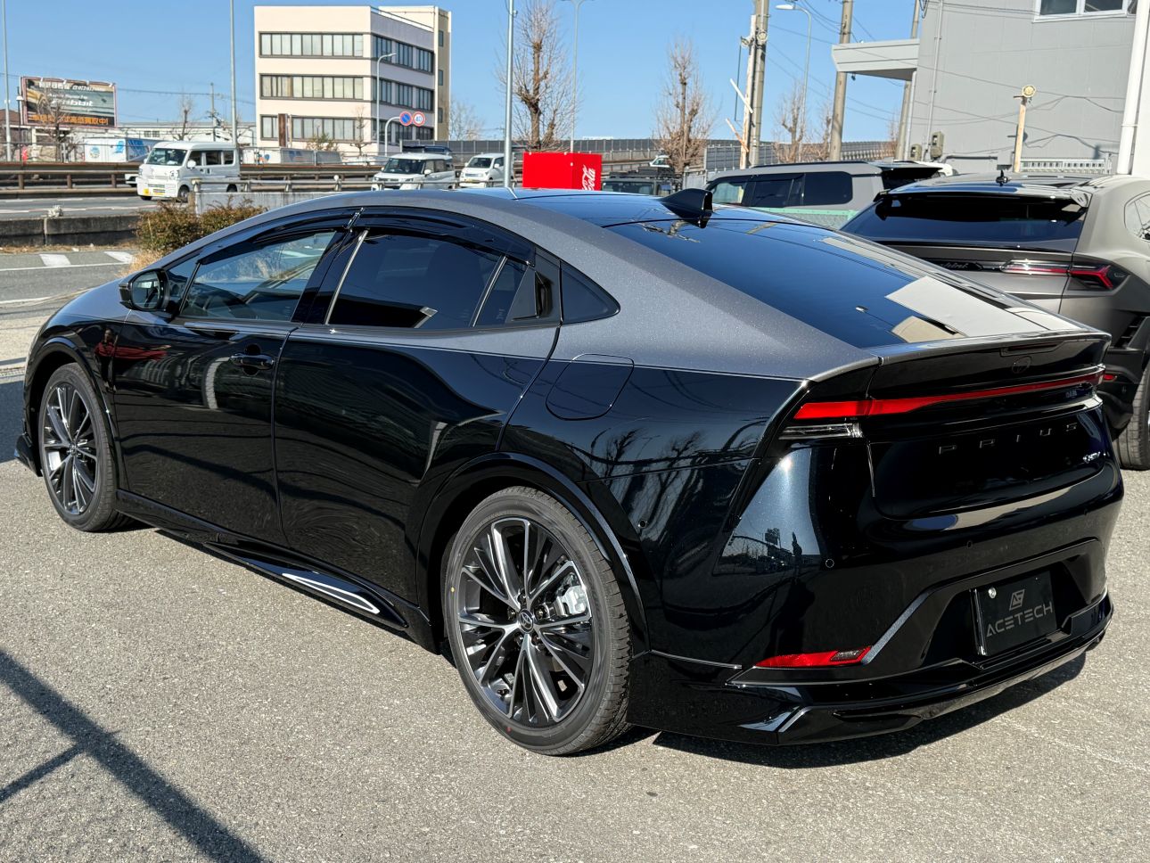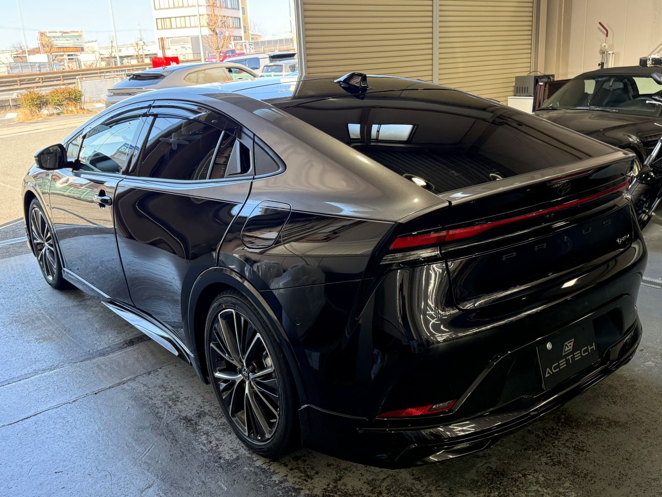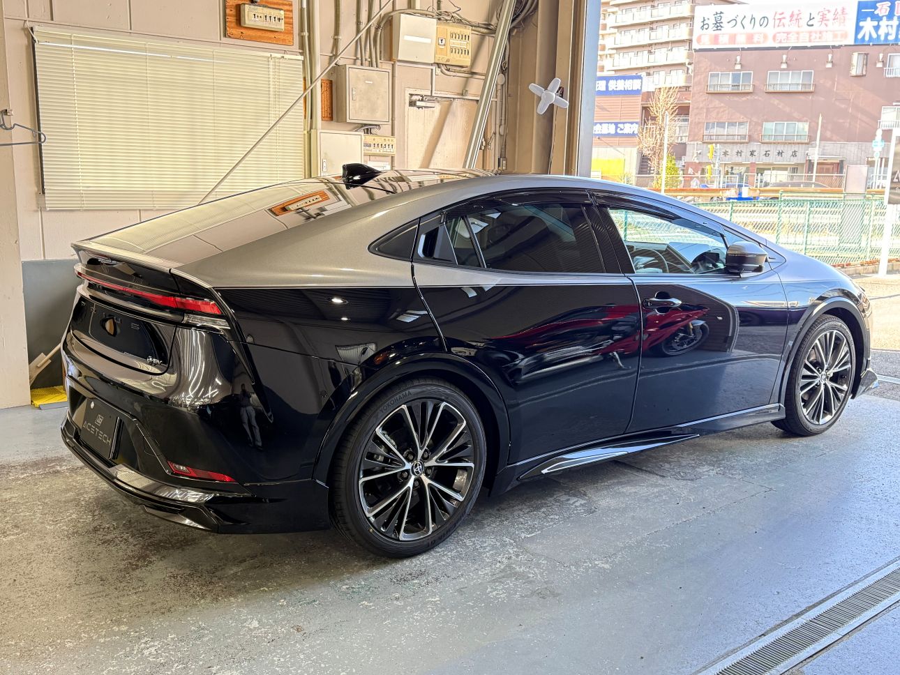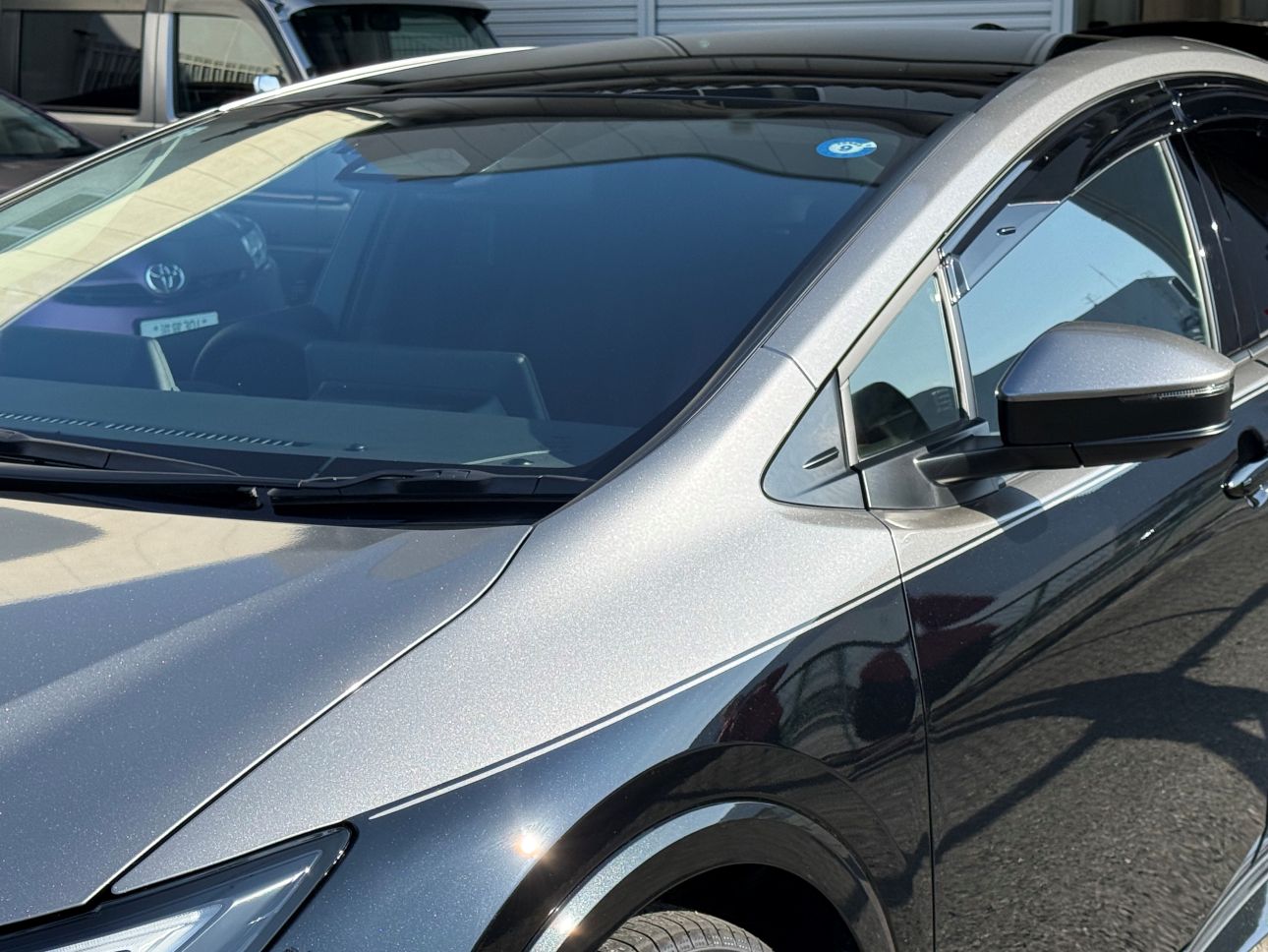 はじめはどうなるかな?と思い施工していくうちに、プリウスにハーフラッピングは結構似合うって結論にいたりました。