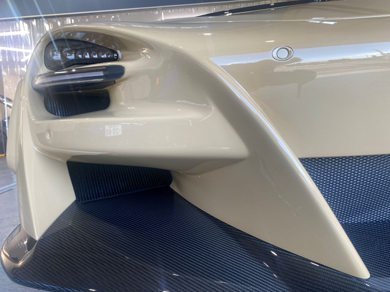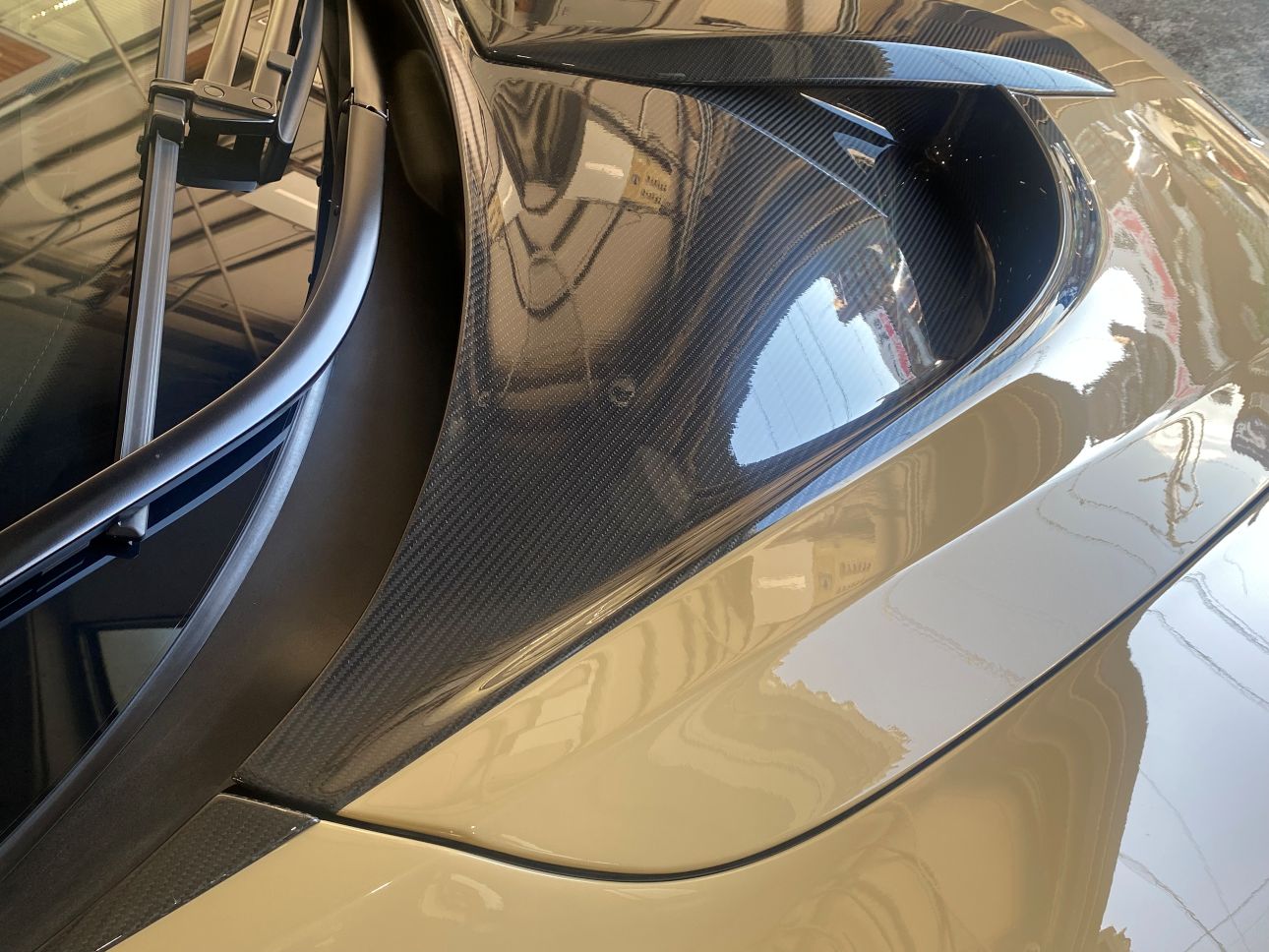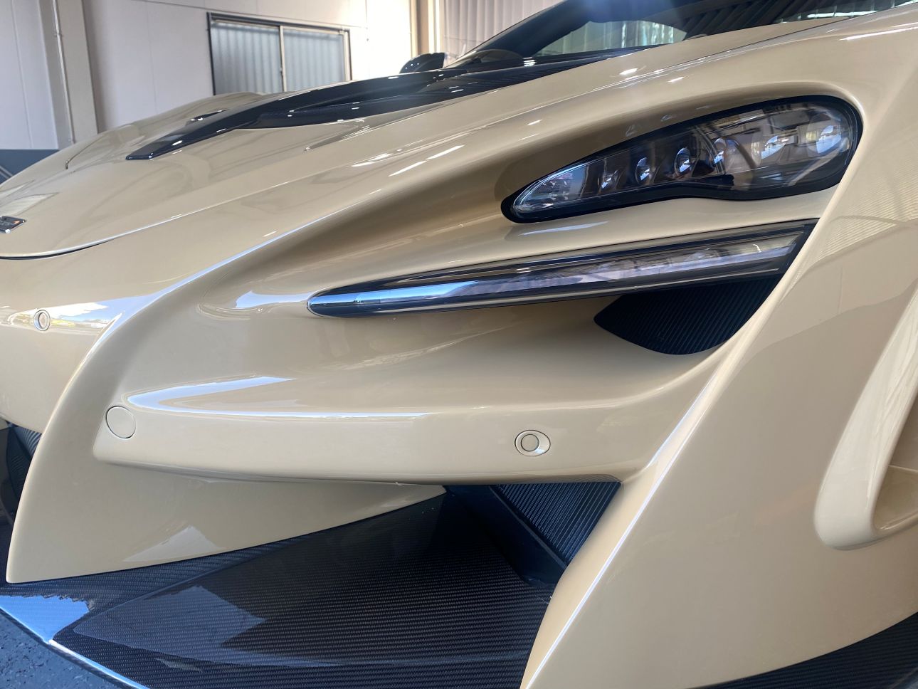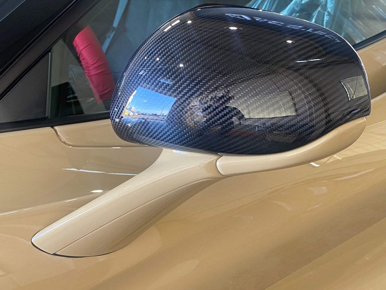 サンドベージュカラーと随所のカーボンが、個性とエレガントさを両立していて非常に美しいお車です。