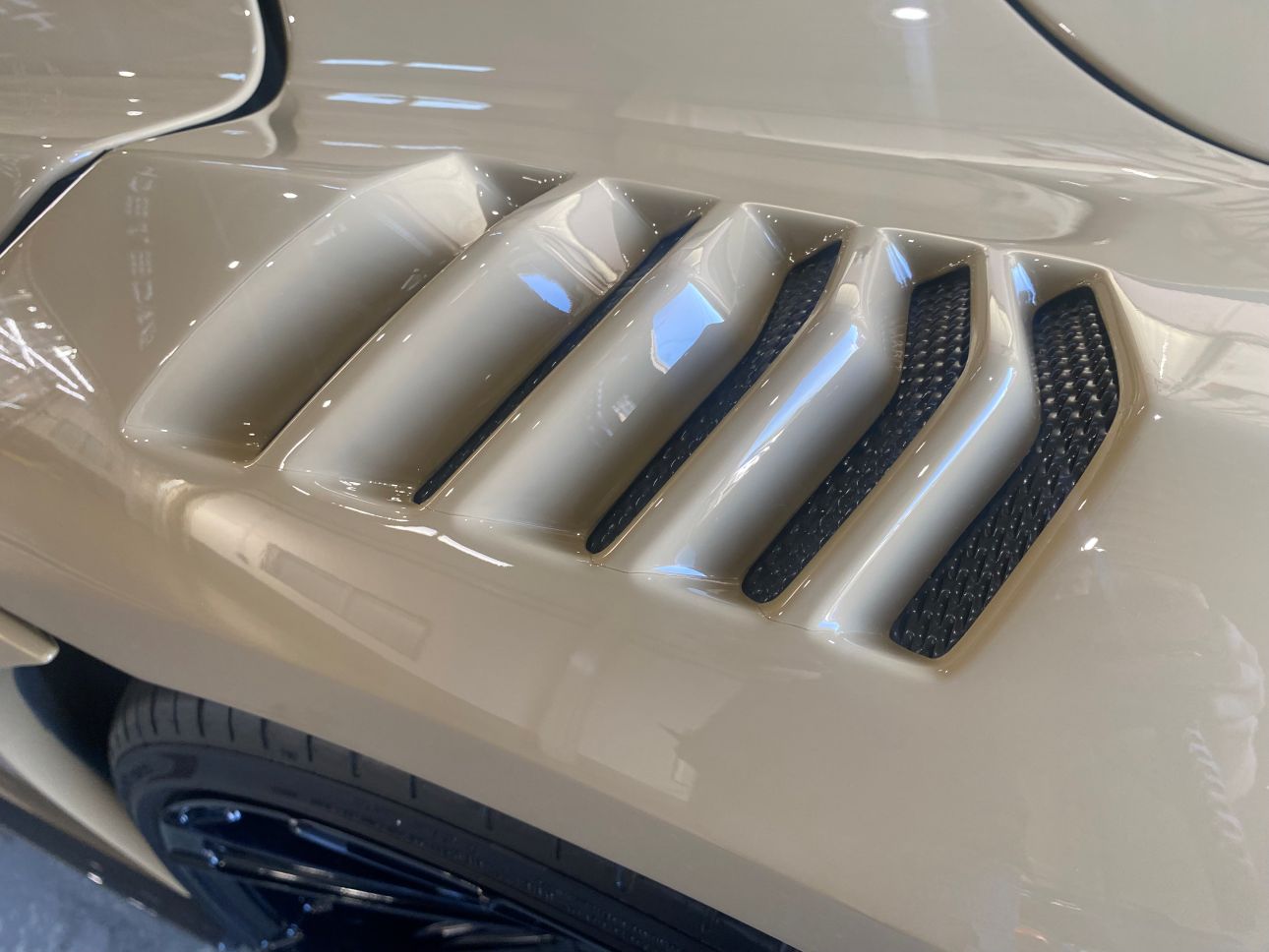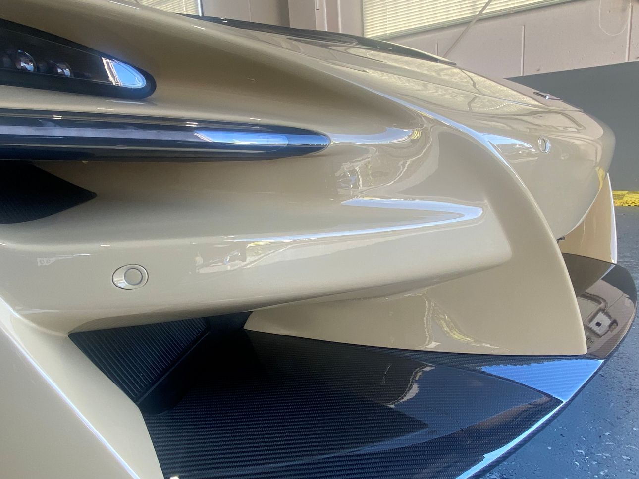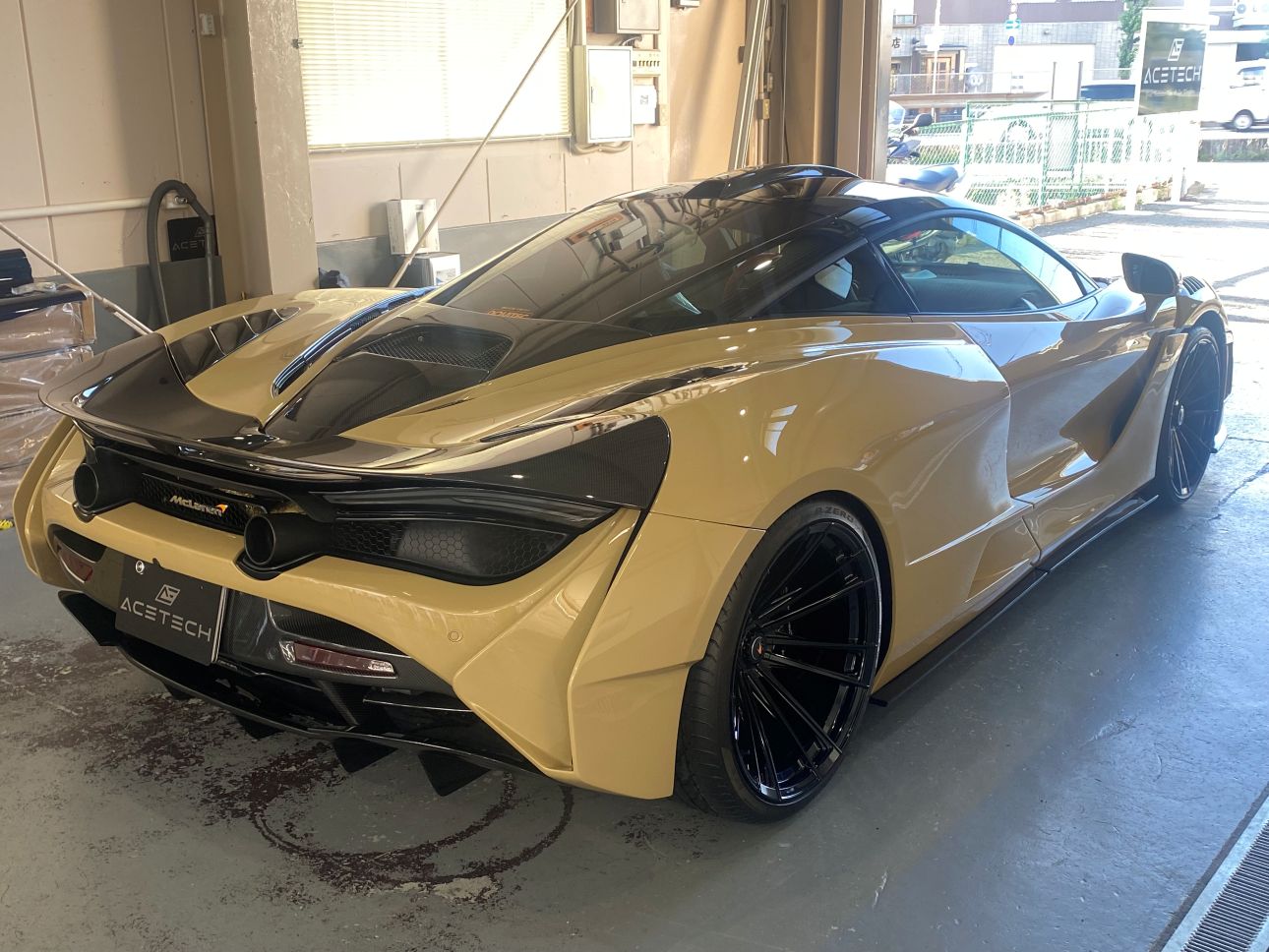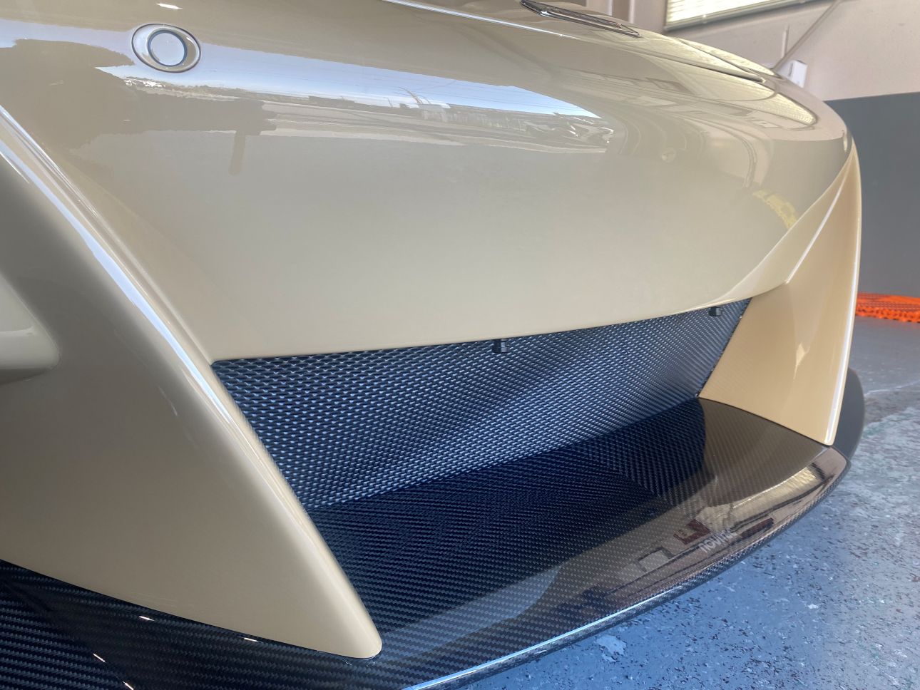 サンドベージュカラーと随所のカーボンが、個性とエレガントさを両立していて非常に美しいお車です。