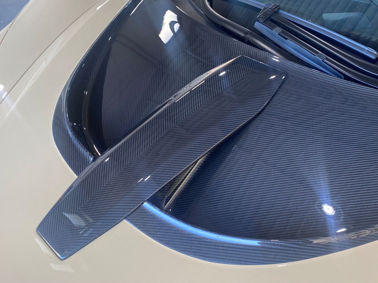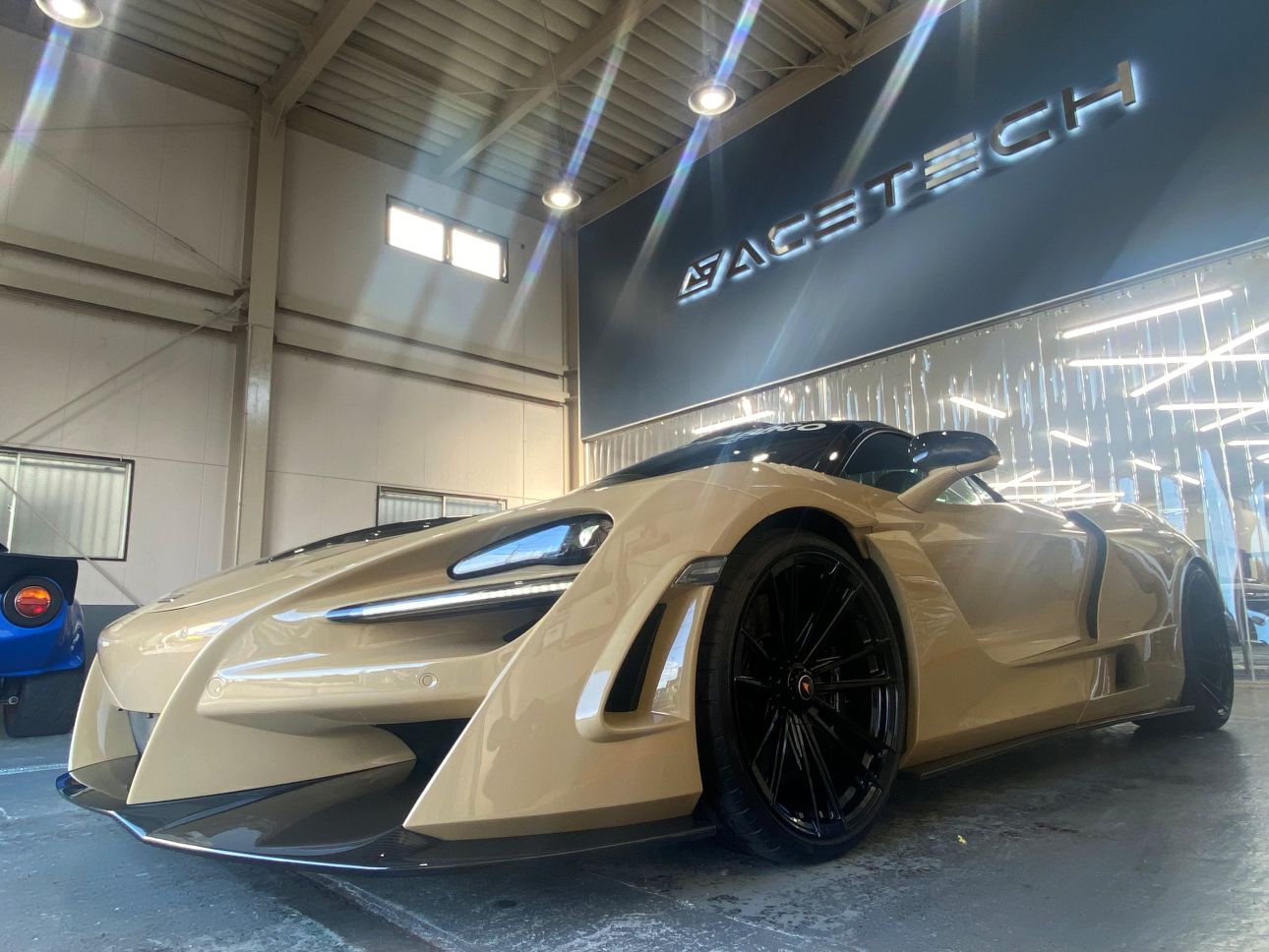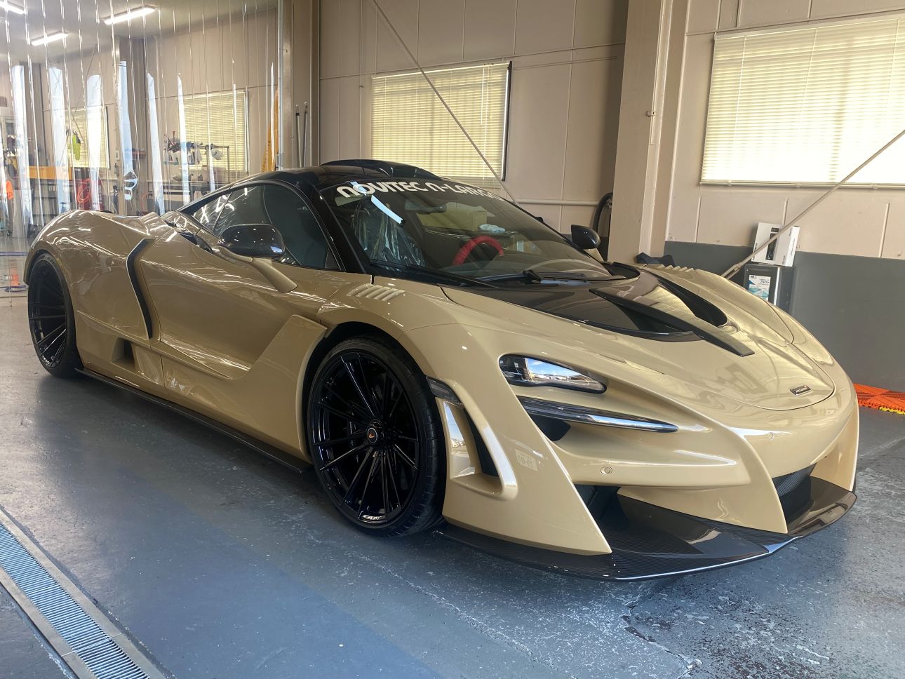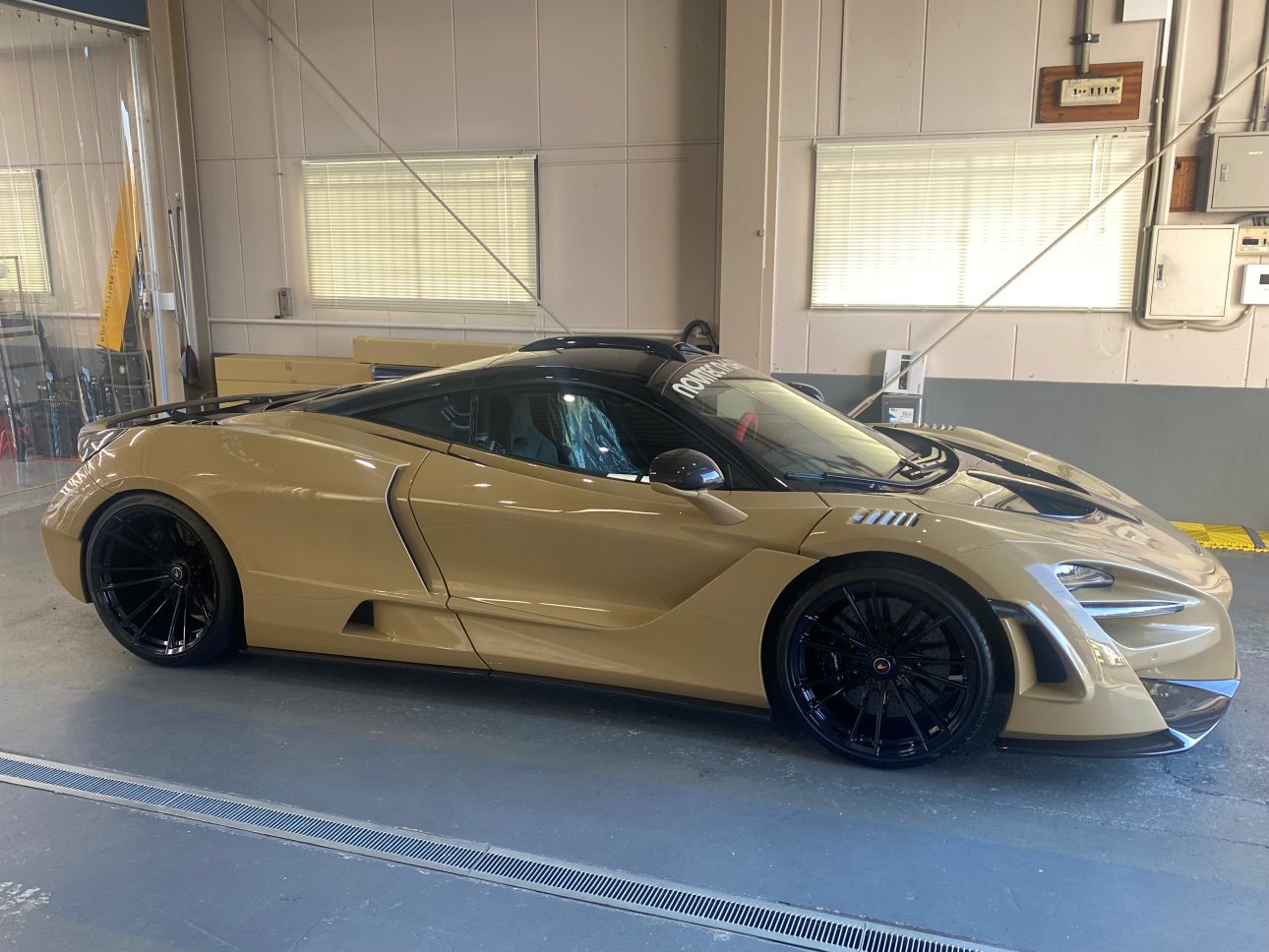 サンドベージュカラーと随所のカーボンが、個性とエレガントさを両立していて非常に美しいお車です。