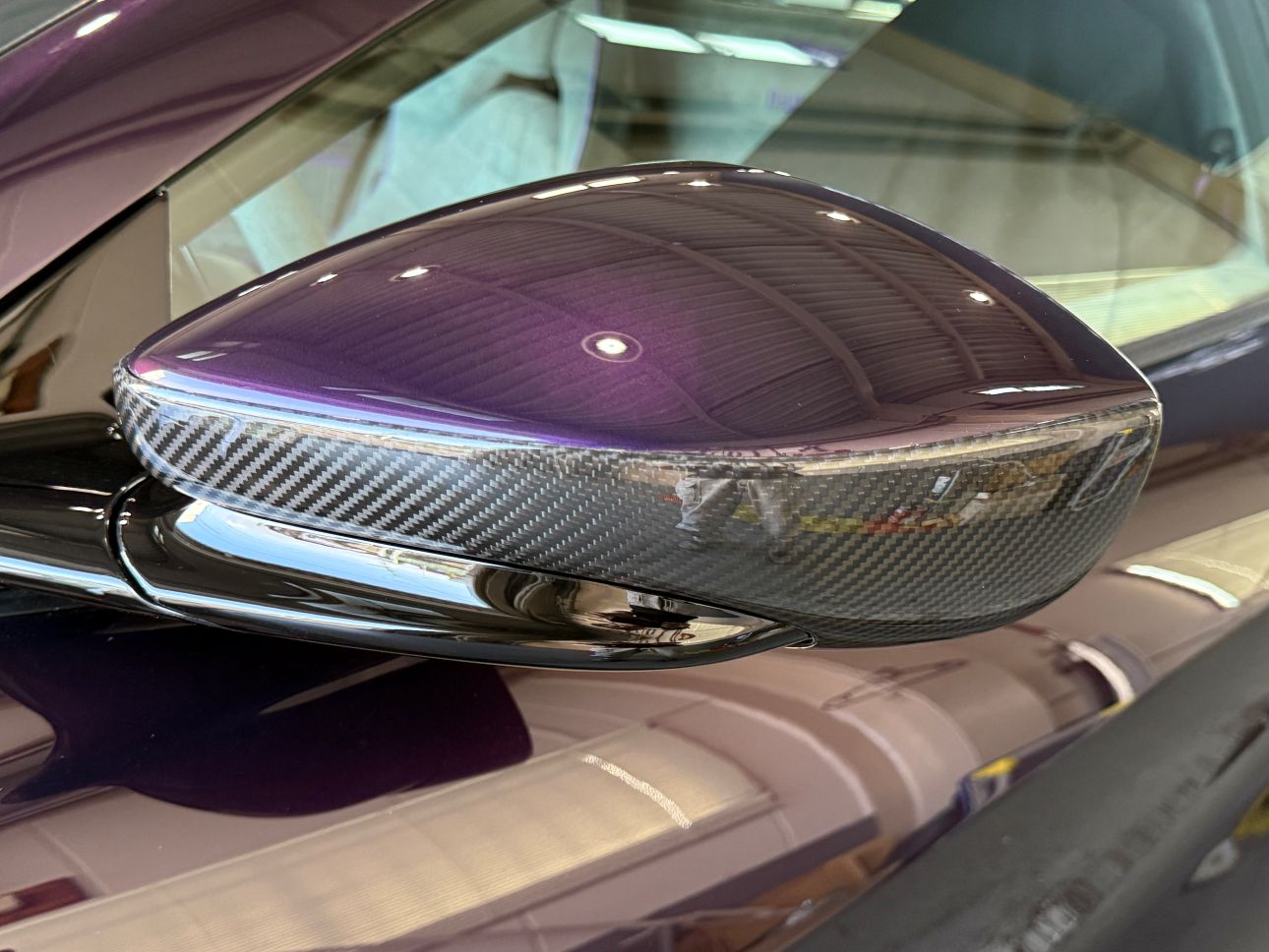 深い妖艶なパープル(ヴィオラ・ホンコン)で塗装されたボディと、随所のキャンディパープルカーボンが、個性とエレガントさを両立していて非常に美しいお車です。