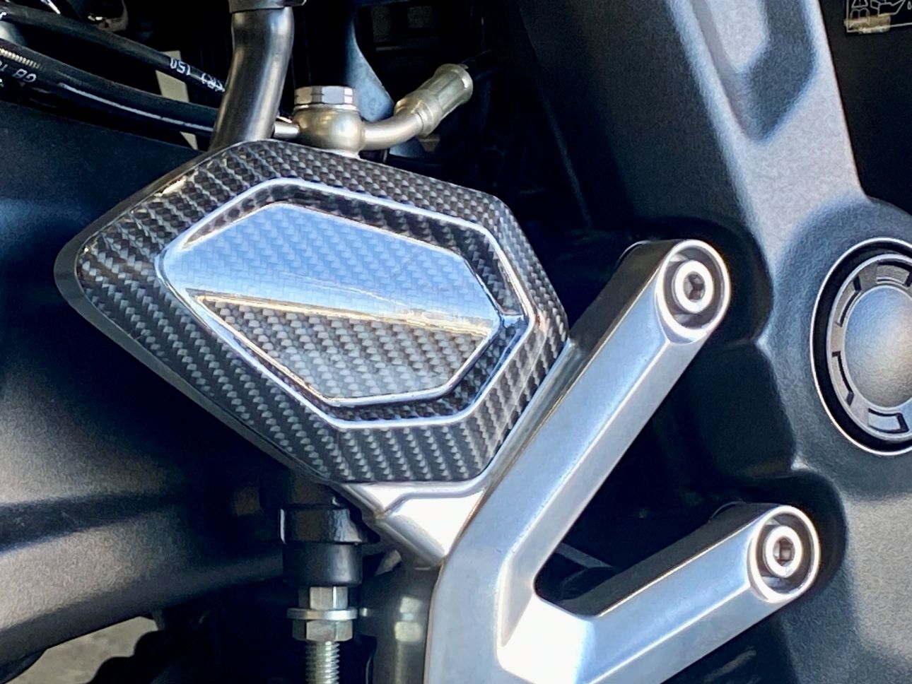 タンク部・サイドカバー・ヒールガード・メーターリングは、グロスカーボンプロテクションでリアルカーボン製品の様なクオリティとなっております。